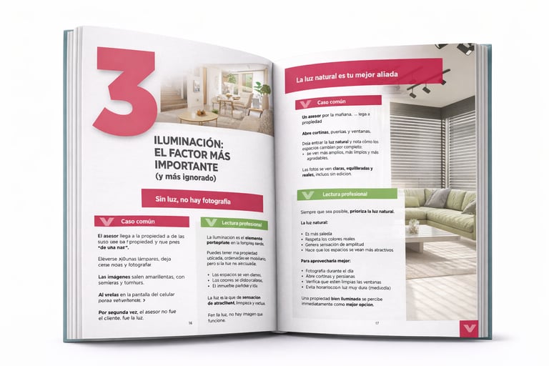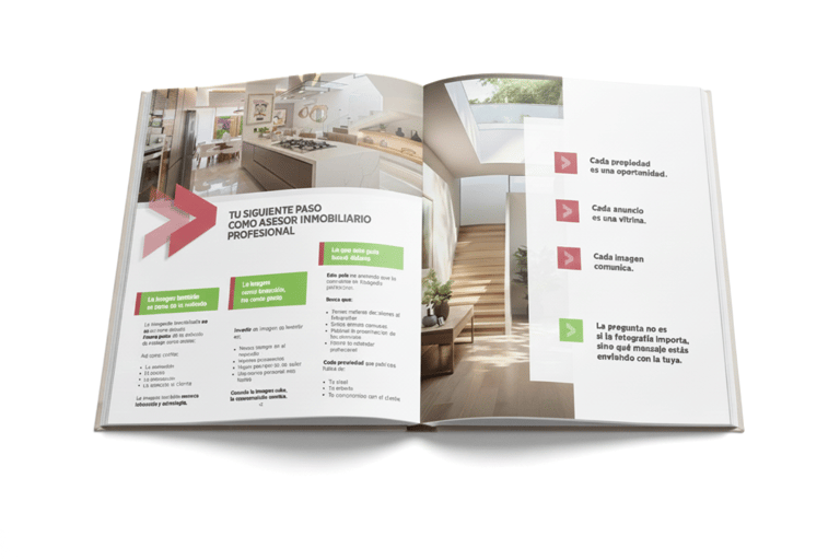 Este ebook te enseña cómo utilizar la fotografía inmobiliaria como una herramienta estratégica, pensada 100 % para el día a día del asesor inmobiliario, sin tecnicismos innecesarios y con enfoque práctico.